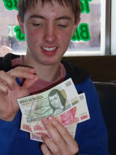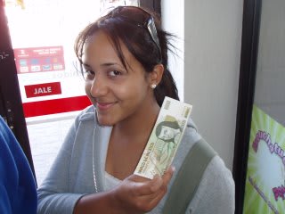 Well, after walking around for almost one hour, we started to get hungry but in Juarez it's rare to find restaurants that accept credit cards, so we went to an ATM and we got some cash. The Mexican pesos look a lot like the ones in my country.