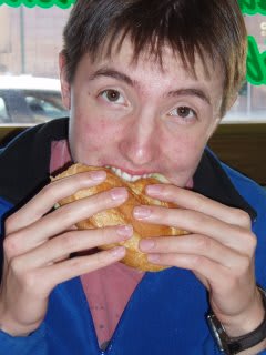 Torta de pollo (Jacob is eating) and tacos de beef( Jared is eating)