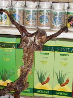 In the Mercado (market) we found cool stuff and also a weird animal, we think that it's a dog but we're not sure. What do you think? People thought that this animal was the CHUPA CABRA!