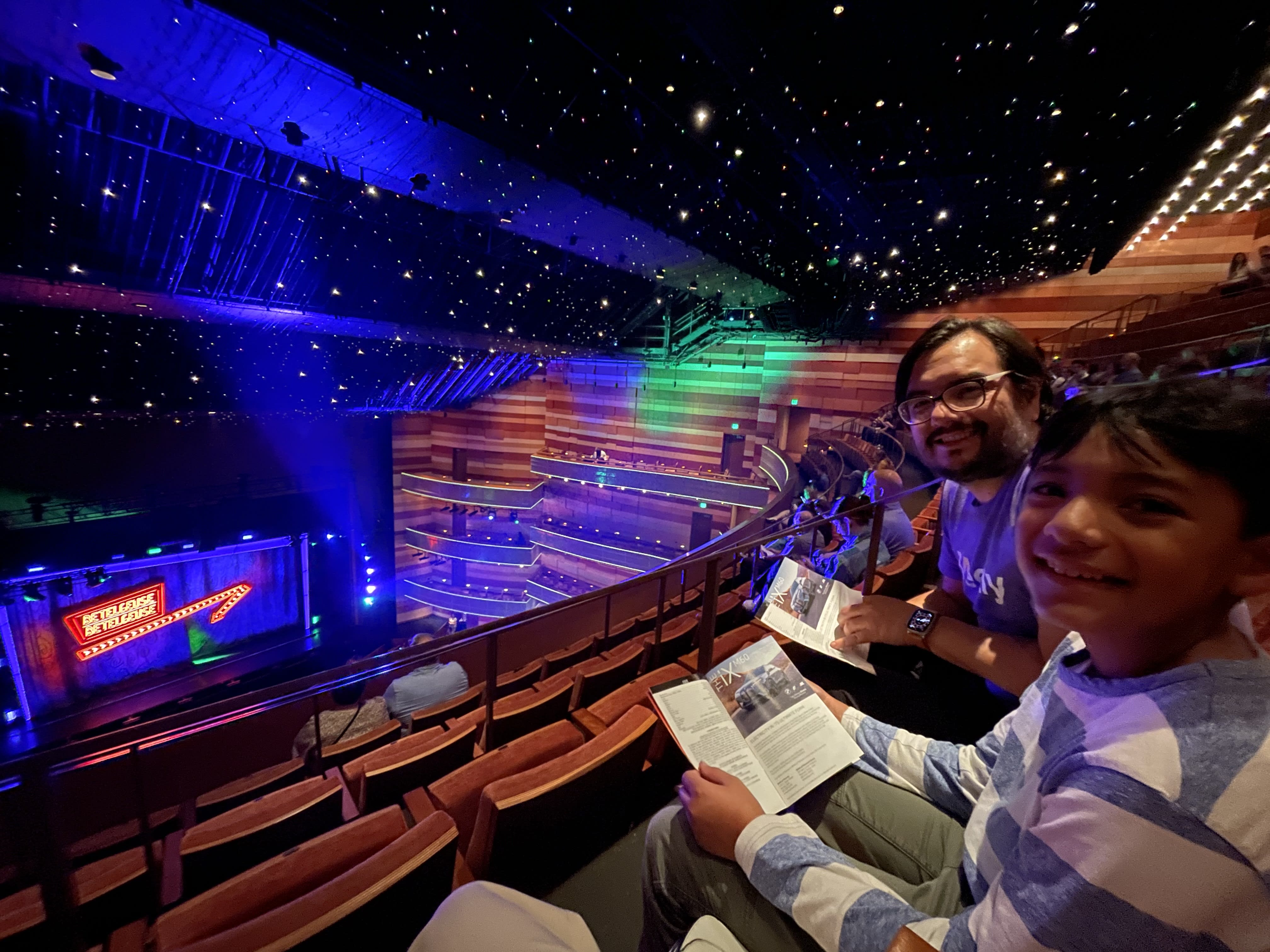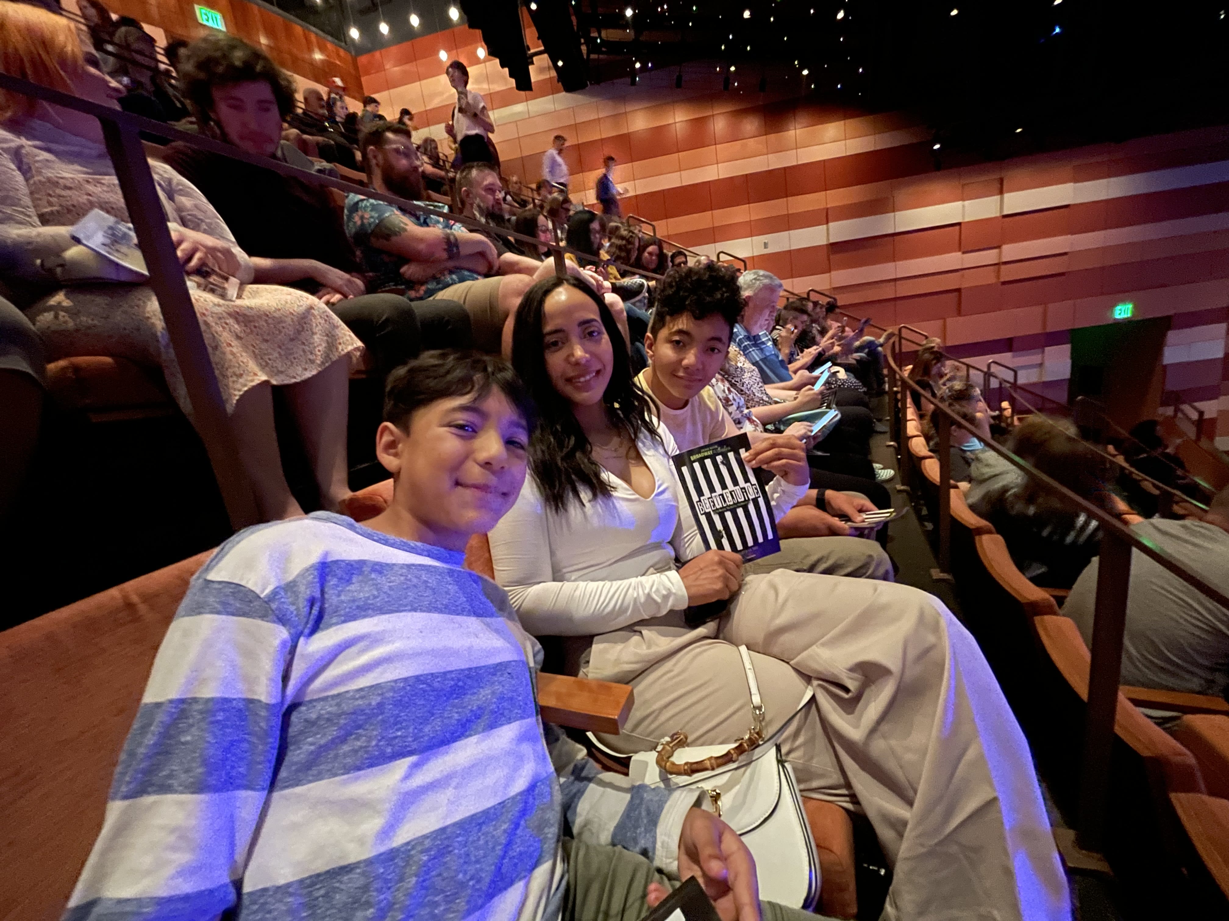 We also treated the boys to a showing of Beetlejuice. Although our seats were high up, the boys thoroughly enjoyed the experience. For dinner, we visited the Eccles restaurant, which turned out to be quite satisfactory. Outside, a band was playing, adding to the overall charm of the evening. It was truly a delightful night out.