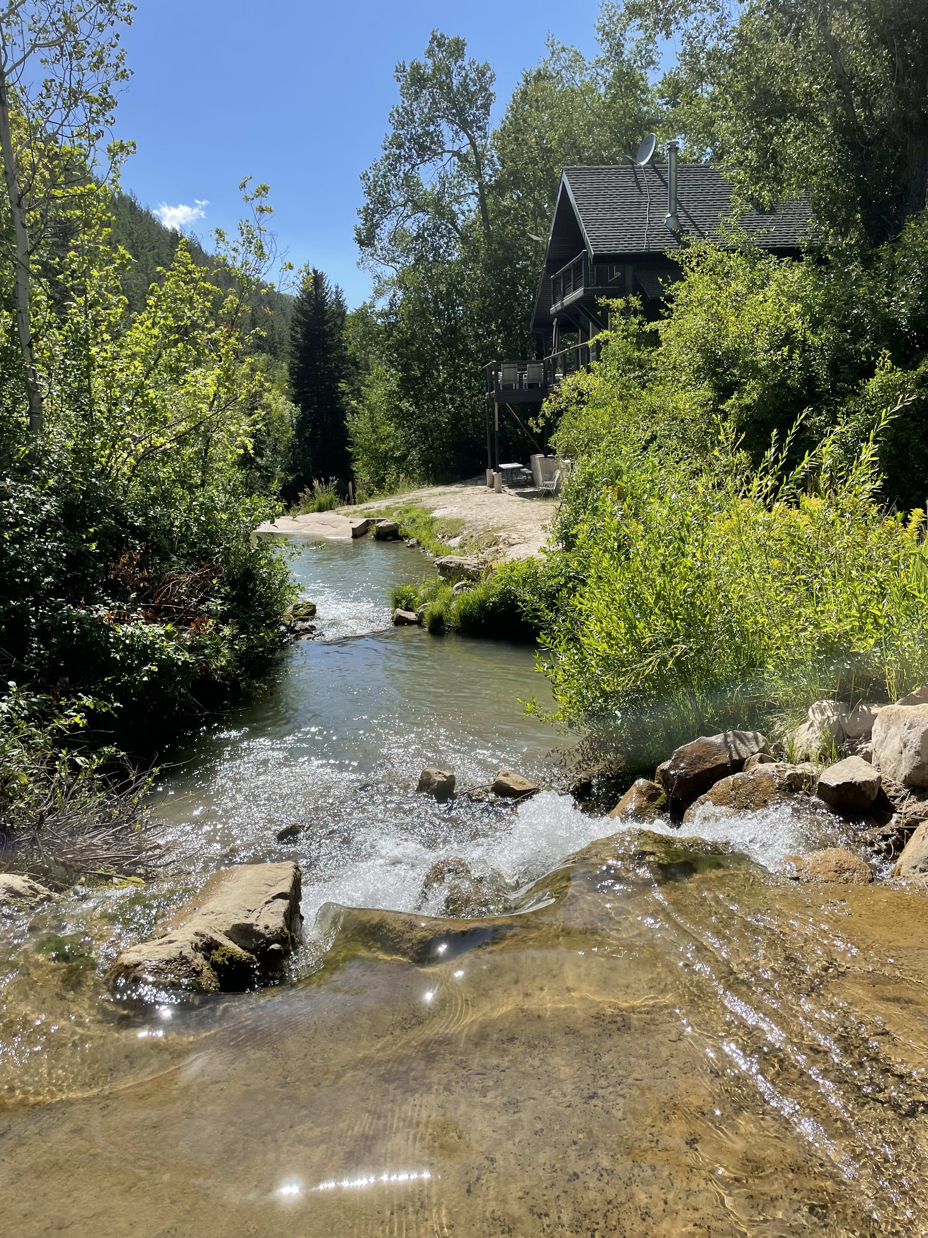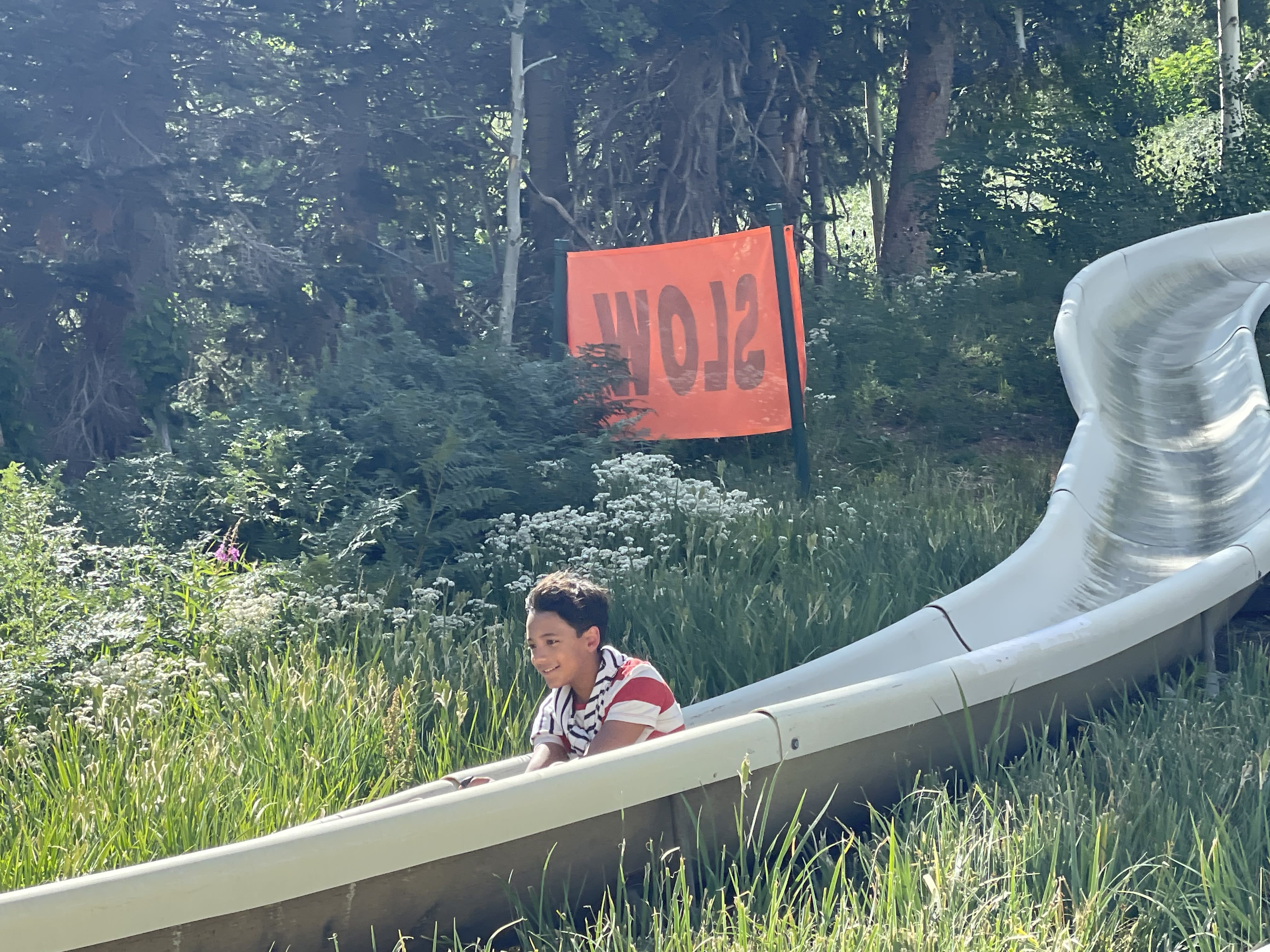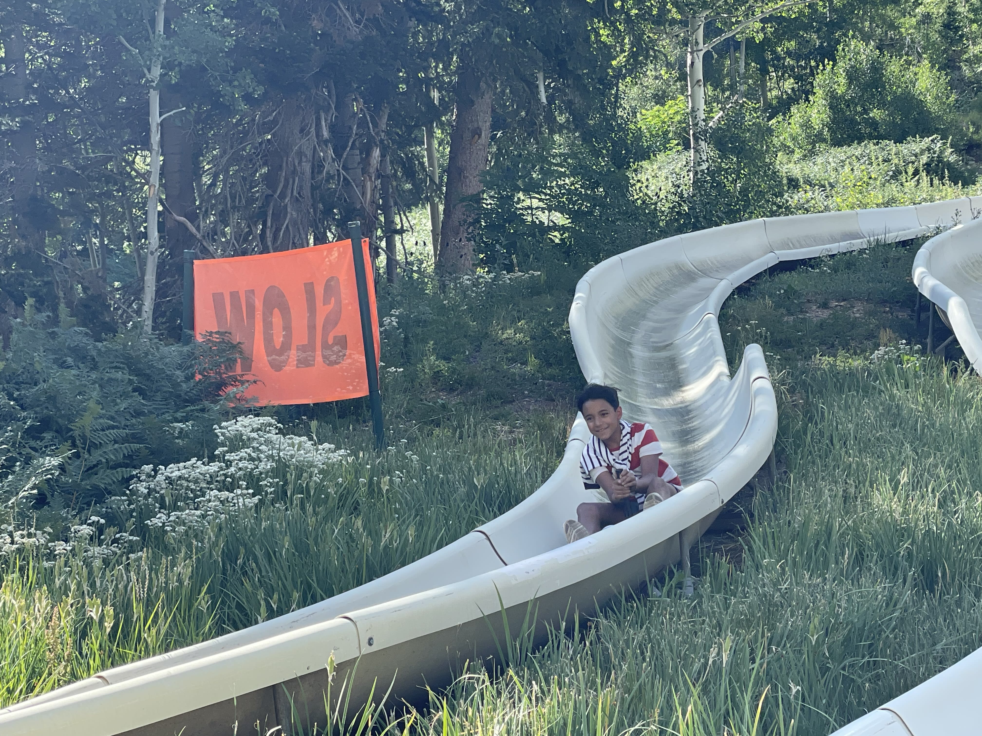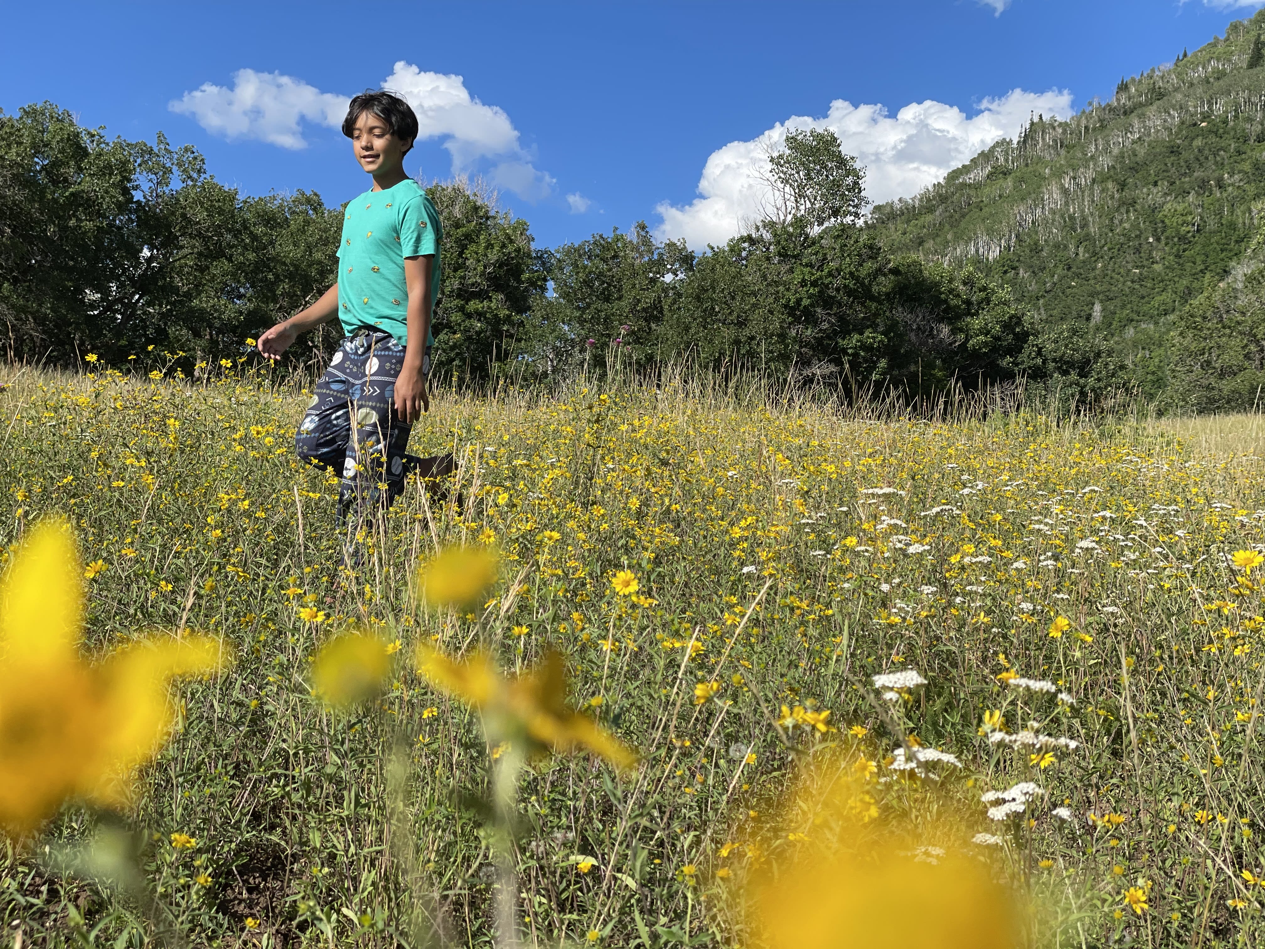 We went back to the cabin and explore around the mountain. We found a new route and saw huge cabins, a deer,and a beautiful meadow full of colorful flowers.