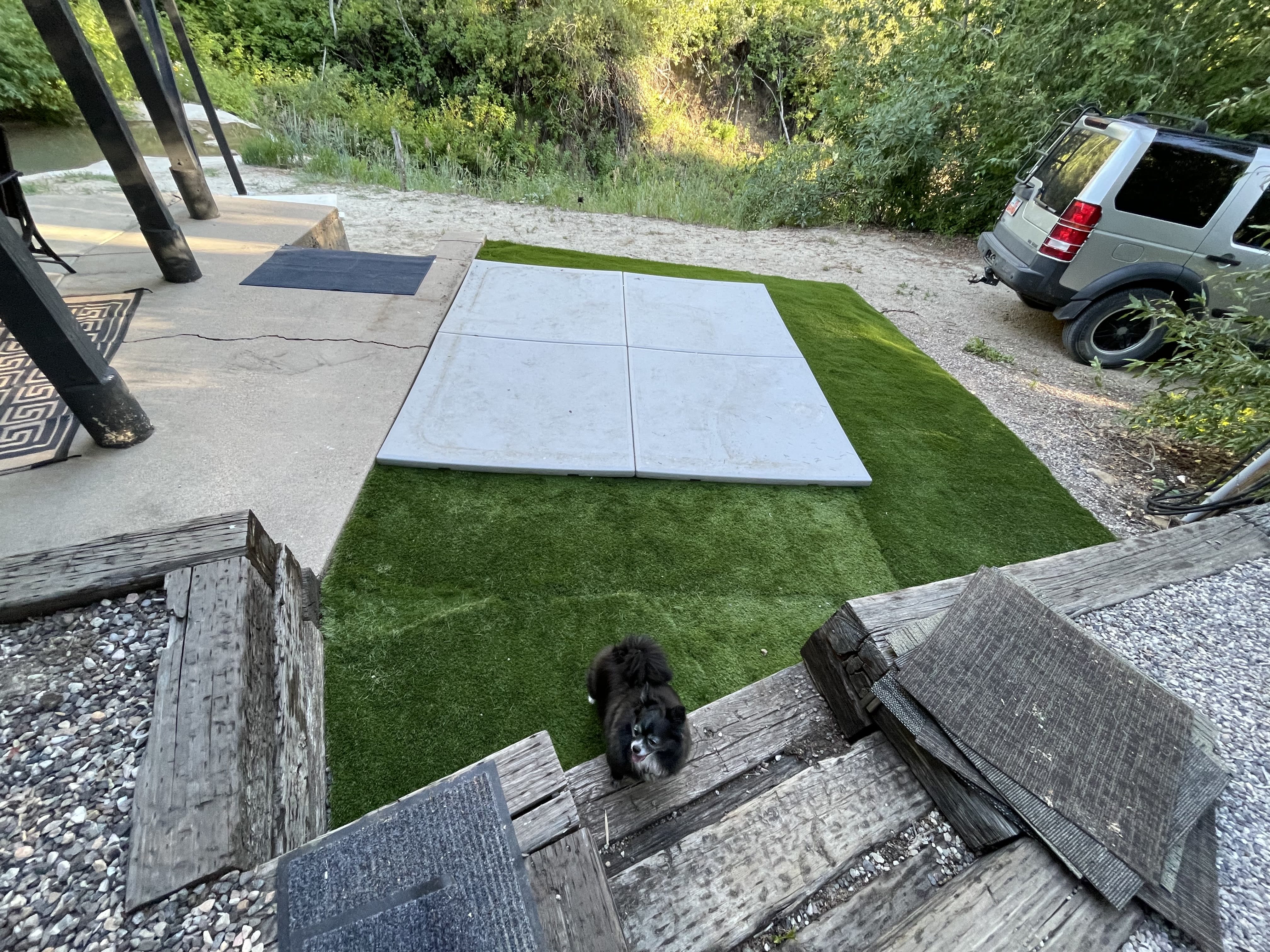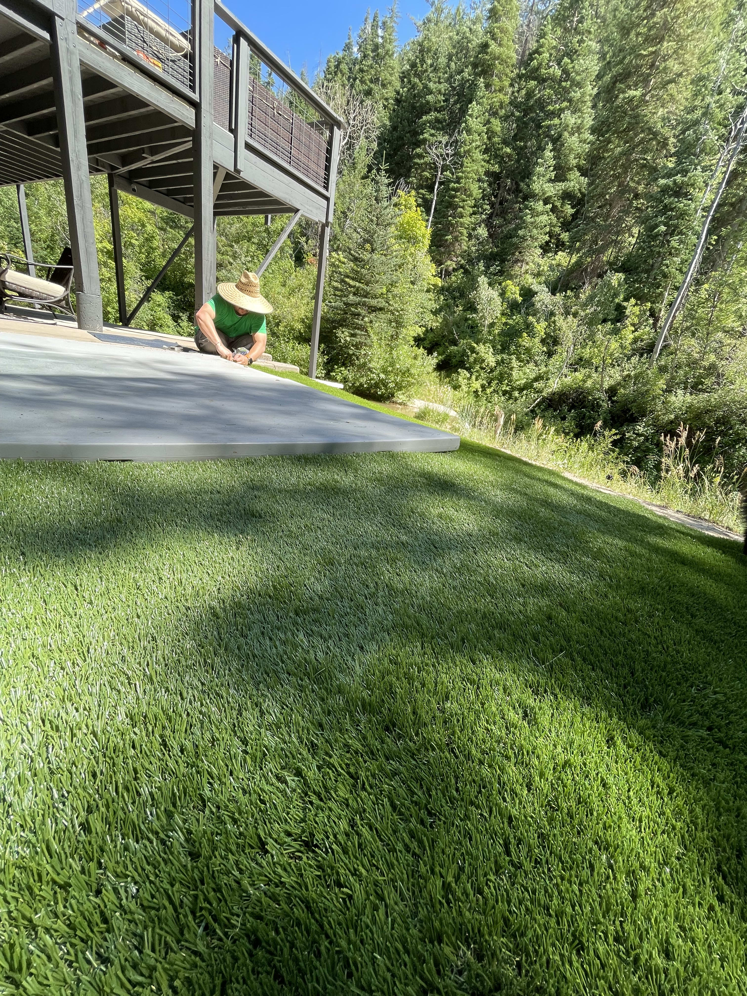 We took the little side by side to for maintance to Provo. On our way back, we bought some more synthetic turf and set it up around the hot tub pad. It looks and feels great.