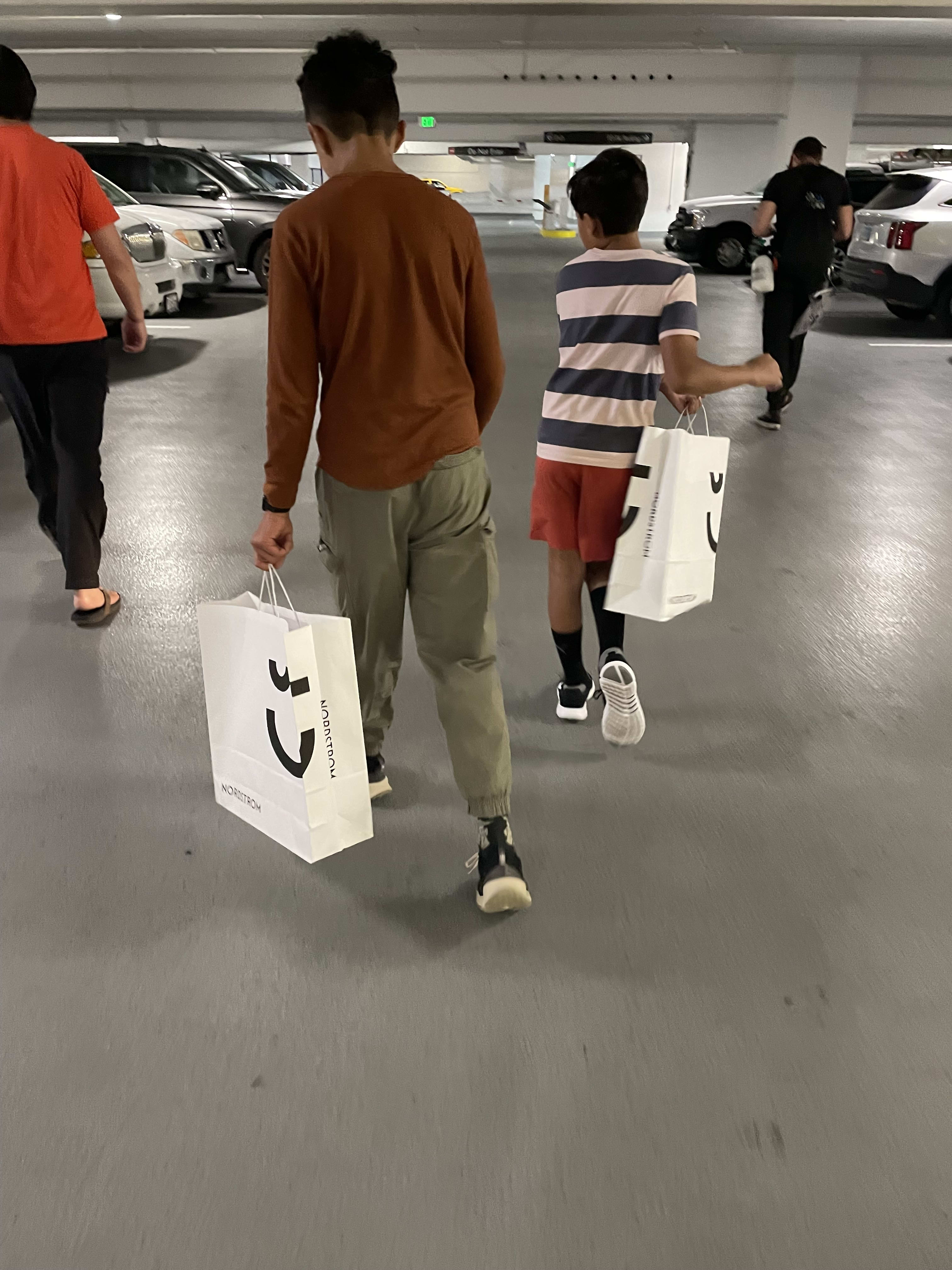 I wanted to plan something exceptionally memorable for the boys, so I decided to take them to a sneaker store. Usually, we get shoes from Costco, and they're perfectly content with that. I persistently suggested those classic Jordans, but they weren't interested in them whatsoever. Mario showed an interest in the Yeezis, but unfortunately, they didn't have them in his size. We went to Nordstrom, where they selected some comfortable and stylish shoes (though, in my opinion, they resemble Costco shoes).